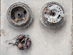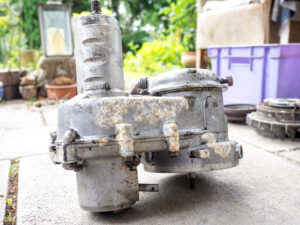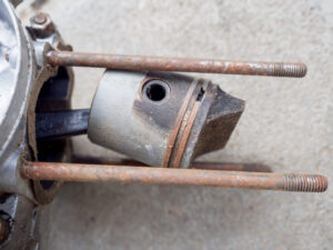 Inzwischen hatte ich zwei Kinder die wissen wollten, was mit dem Roller ist. Also habe ich das Projekt mal wieder aufgegriffen und beim Carwash den Roller von dickem Schmodder befreit. Den Motor habe ich ausgebaut um mal reinzuschauen (Nasenkolben 56,5mm).