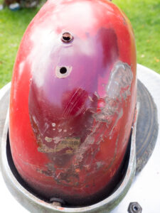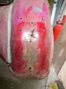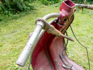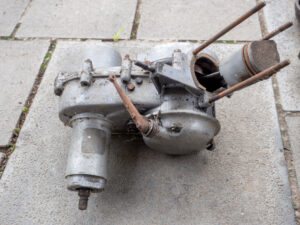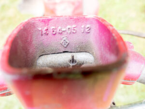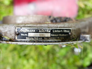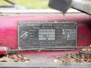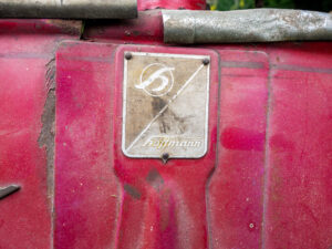 Dank der Infos von www.rohrlenker.de konnte ich feststellen, dass meine Vespa eine der Letzten ist, die Hoffmann gebaut hat. Es dürfte sich um das fünfte Modell Hoffmann Vespa HB handeln. Allerdings kein Sickerahmen und als Besonderheit ein Tacho im Gussträger. Der Lack dürfte noch der Originallack sein ‚Brilliant Rubin Rot‘ (Quelle: www.vespafarben.de).