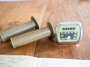 Noch zu Vor-Internet-Zeiten habe ich Griffe, einen Tacho und einen Seitendeckel für die Motorseite gefunden.